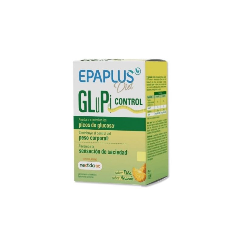 Epaplus diet glupi control es un complemento alimenticio a base de colágeno nextida-gc®, cromo y una exclusiva combinación de extractos vegetales que contribuyen: - a controlar los picos de glucosa, gracias a su contenido en cromo, que contribuye a mantener los niveles normales de glucosa en sangre. - al control y reducción del peso corporal, gracias a su contenido en ceratonia siliqua y opuntia ficus indica (carolean®) y en nuez de cola. - a favorecer la sensación de saciedad, dado que contiene ceratonia siliqua. - gracias a su alto contenido en proteínas procedentes del colágeno nextida-gc®, epaplus diet glupi control también contribuye al mantenimiento de la masa muscular.